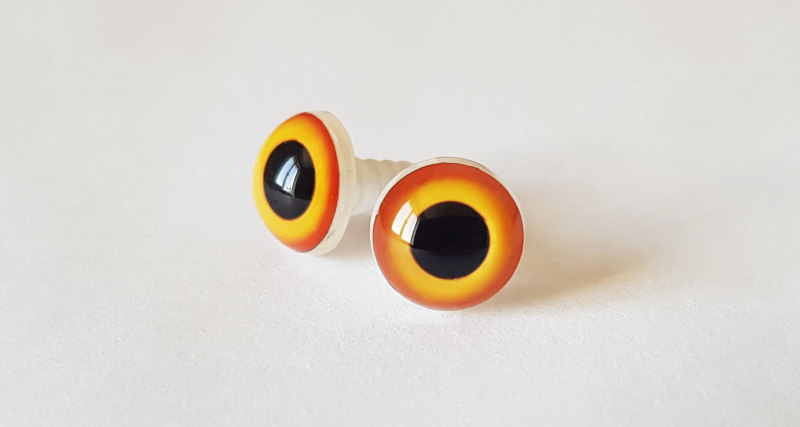 Every our bird eye is made with the ultimate level of definition. The realistic eye designs taken after those of real birds would become a perfect choice for your next mounts. The Senegal Parrot model is a true star in our galaxy of bird eyes. A well-defined round pupil of black color and a glaring iris with interleaving yellow and orange shades in its coloration create an absolutely fabulous look. The iris and pupil are digitally printed, which allows us to produce very complex images. On the back side of the eye, there is a ribbed plastic peg that helps position and set the eye on a mold. It can be easily snapped off if not needed
